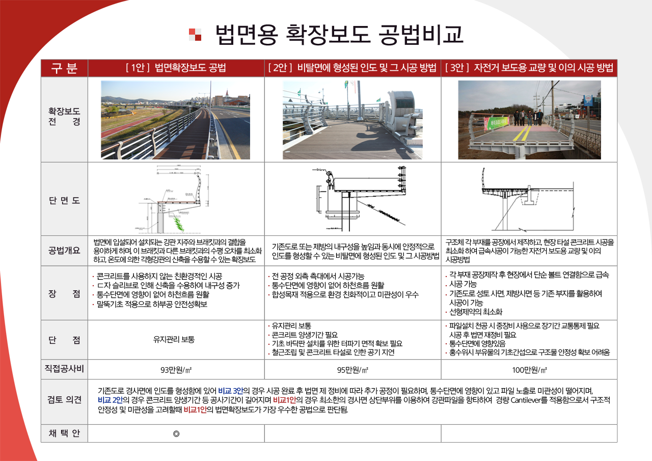 - 구조용 강관파일 공법에 의한 법면용 확장보도의 필요성
