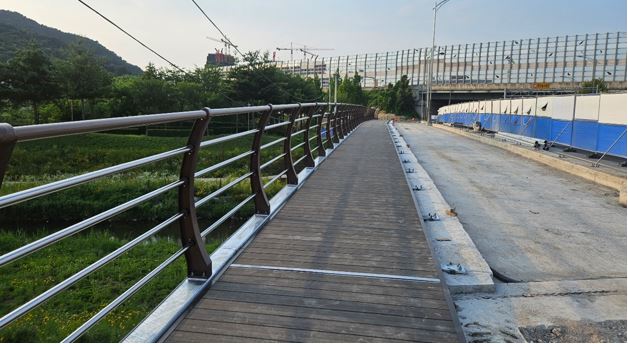 이전글 다음글 목록 율하하이패스IC 접속도로 설치공사(상하진동) 교량용 확장보도 공사명 율하하이패스IC 접속도로 설치공사(상하진동) 주소 경상남도 김해시 공사일정 2023년 6월 인도교 상세 B=2.2m, L=67.6m 이전글 다음글 목록