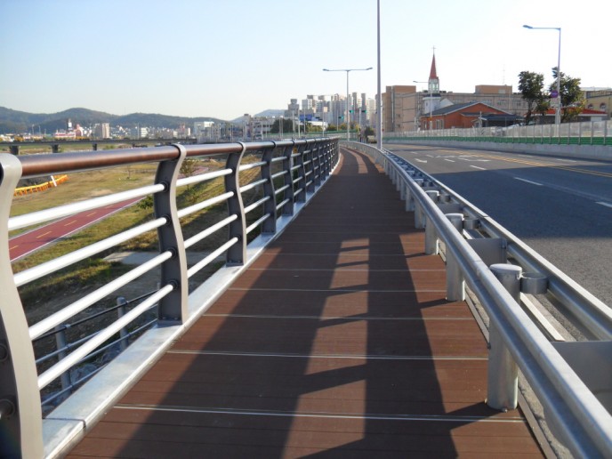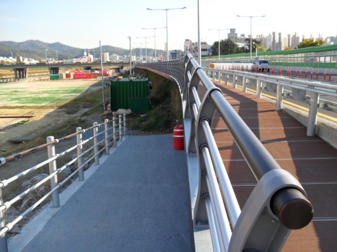 이전글 다음글 목록 대전시 유등천 좌안도로 건설공사 중 데크설치공사 법면용 확장보도 공사명 대전시 유등천 좌안도로 건설공사 중 데크설치공사 주소 대전시 서구 복수동 ~ 도마동 공사일정 2011.7 ~ 2011.12 인도교 상세 B=2.0M , L=1063M , H=1.2M 이전글 다음글 목록